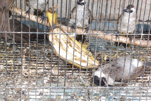 birds on sale illegally at Jalan Pemuda bird market in Tanjung Karang, Lampung