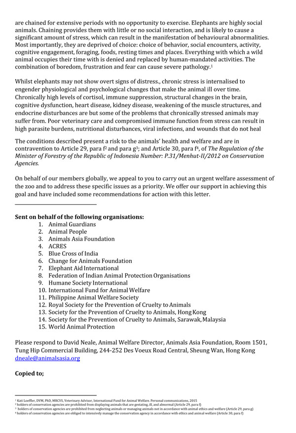 globally, we appeal to you to carry out a welfare assessment of the zoo and to