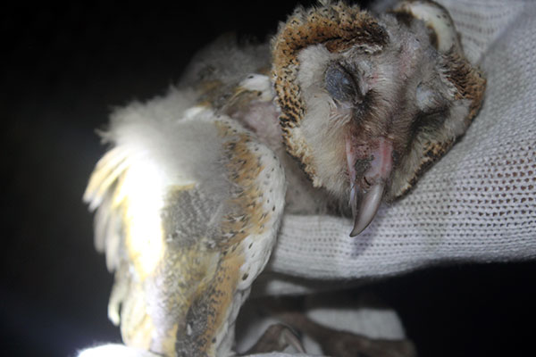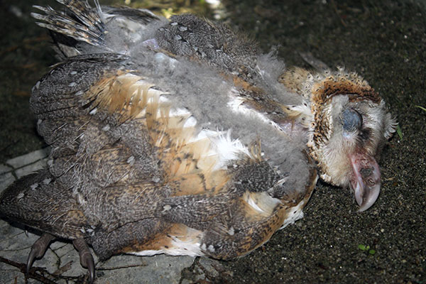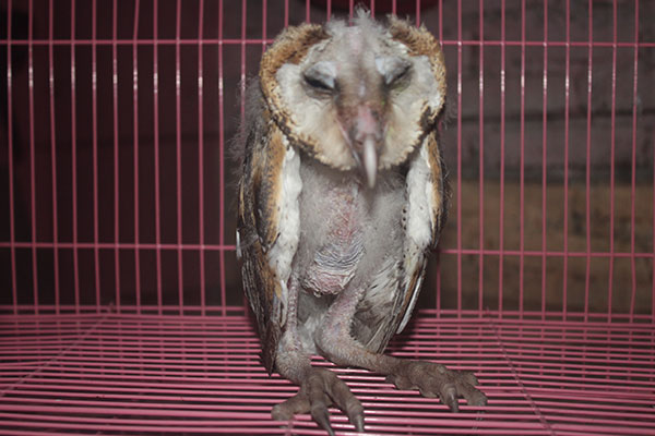 Burung hantu ini jatuh dari pohon dalam kondisi tidak sehat.