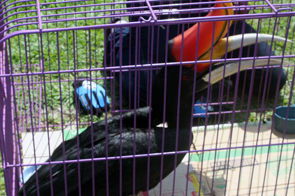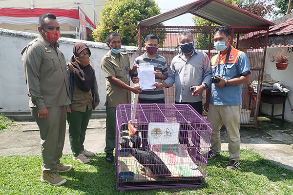 A joint team from the Wildlife Authority (BBKSDA Sumut) and Scorpion Foundation rescued a Rhinoceros hornbill (Buceros rhinoceros) from Parbubu I Village, North Tapanuli regency in North Sumatra province.