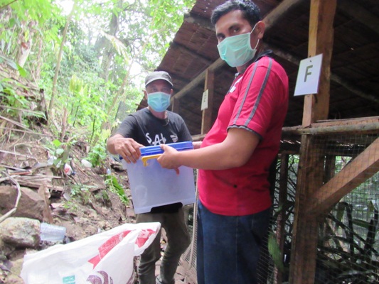 Samuel Siahaan from BBKSDA (in red t-shirt) receiving the slow loris.