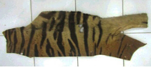 Various other accessories made of tiger skin were also confiscated: one ring; two wallets; and two small pieces of tiger leg; and two belts.
