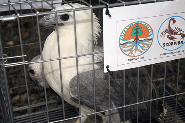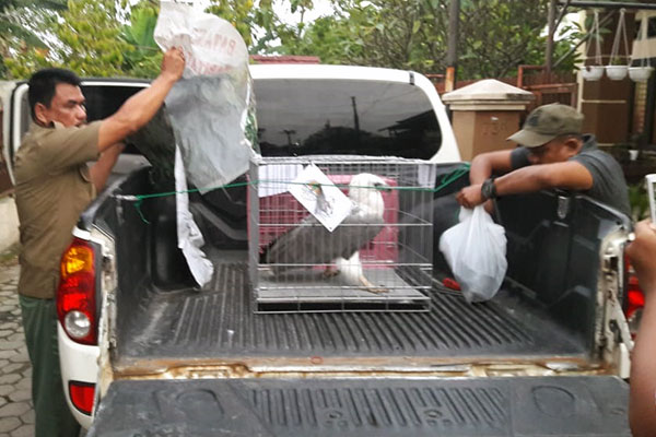 A sea eagle (Haliaeetus leucogaster) was rescued by a team from the wildlife authorities (BBKSDA North Sumatra) and the Scorpion Foundation from the Griya Family Housing Complex, Medan (2020/09/21).
