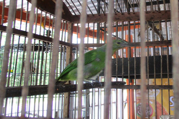 Allegedly illegal song birds (White-rumped shama, Greater green leafbird, and Sumatran laughingthrush) were on sale at Aek Pining village, Batangtoru, South Tapanuli. Field staff of Scorpion Foundation in Batangtoru visited the bird sale location on 25 April 2020 and took some photographs. These birds were captured in Sibabangun, Central Tapanuli. According to a source, protected birds are often on sale in this location but when visiting the location Scorpion did not find any protected animals. This locaton need to be monitored further. All wildlife captures must be covered by permit from BBKSDA, and transportation of any wildlife (protected or non-protected) must also be accompanied by transport permit (SATS-DN) from BBKSDA.
