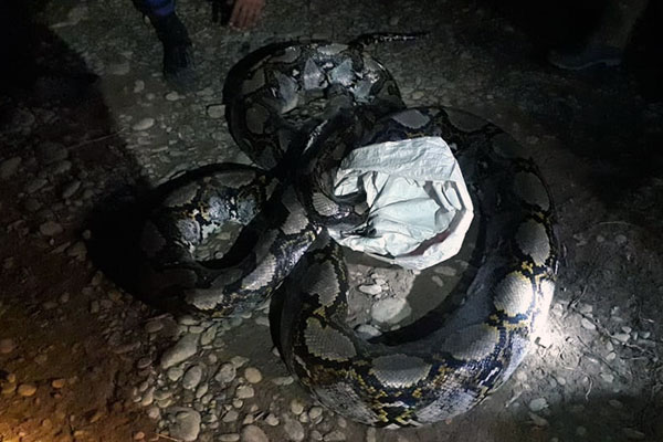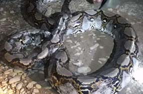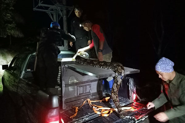 that an 8-meter snake, (python) attacking community's goats on his village.
