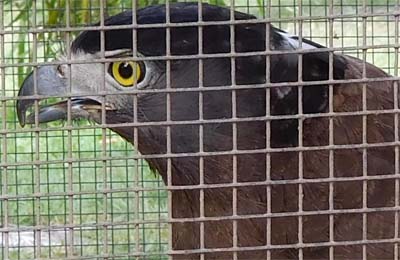 Placed in a cage without wooden perch, similar to chicken cage, a little eagle (Hieraaetus morphnoides) in Mira Fantasia wildlife park (Banyuwangi, East Java province) could not fly. This bird could only walk like chicken inside the cage. However, starting from today (30th of December 2015), this eagle has been able to fly because its cage is improved.