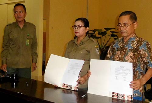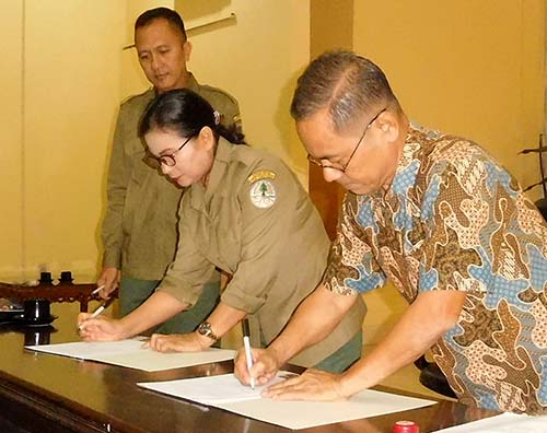 Picture from right: Executive Director of Scorpion Foundation, Gunung Gea, and Head of BBKSDA North Sumatra Hotmauli Sianturi signing the Annual Work Plan. The signing was witnessed by the head of administration department of BBKSDA, Teguh Setiawan.