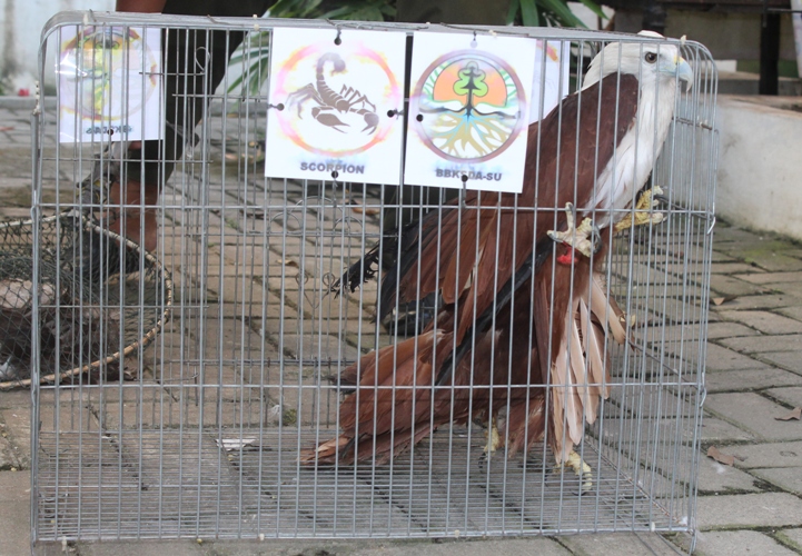 The Wildlife Authority (BBKSDA) in North Sumatra Province and the Scorpion Wildlife Trade Monitoring Group confiscated three eagles from a three-star hotel, Hotel "G", in Medan on Friday (19th of May 2017). The eagles have now been moved to BBKSDA Wildlife Rescue Centre in Sibolangit for health care before they are returned back in the wild.