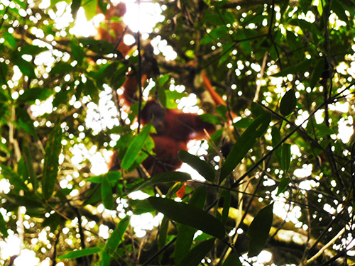 During the patrol, the team encountered two orangutans (a mother and baby). Due to their location when found very close to residential areas, the team drove them to enter the forest for their safety. Being in the same position can endanger them too.