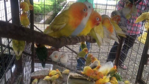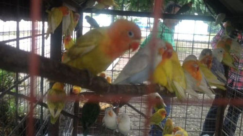 birds consist of Love bird, Greater green leafbird, and White-rumped