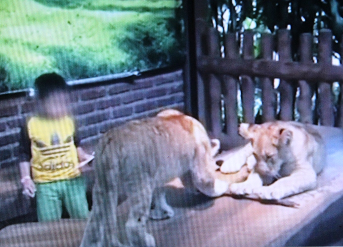 cubs being used as photo props and interacting with a child at Taman Safari Prigen, Pasuruan (East Java). The Asia for