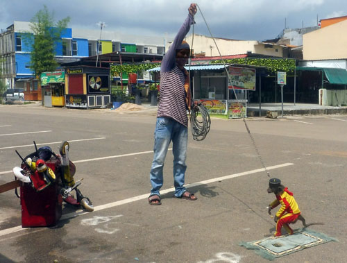 dancing monkey attraction was shown in downtown Batam. The attraction was very cruel