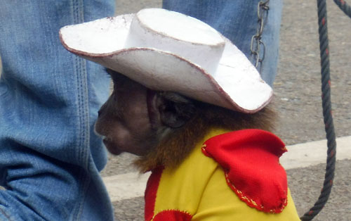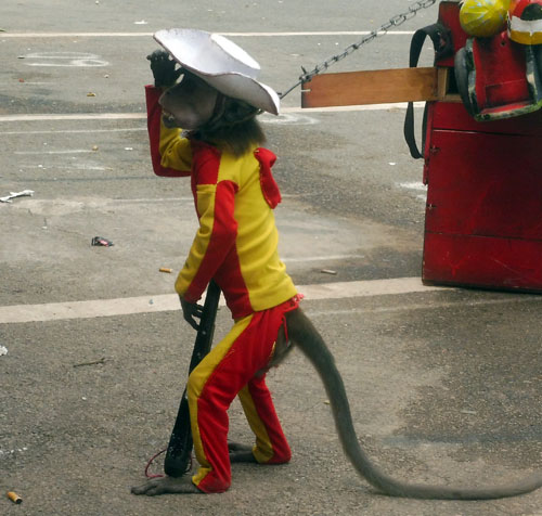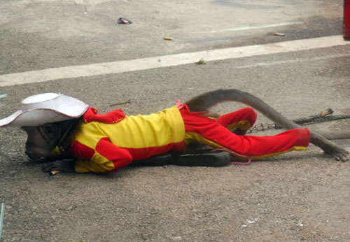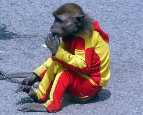 Protection. In Jakarta dancing monkey attraction has been banned but outside