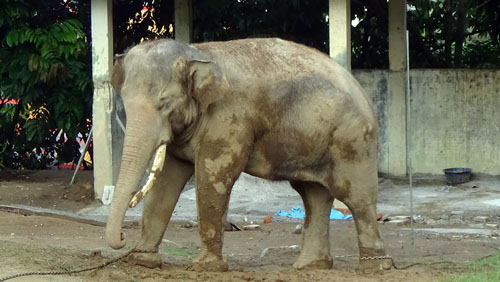 is the condition of the elephants. The Elephants are chained on two legs (front and back