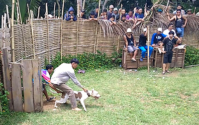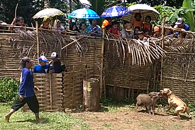 While in some areas near the capital city of Bandung, the dog-wild boar fight have been stopped, the Scorpion Foundation member still found wild boar-dog fights in Pamarican village, Pamarican sub-district, Ciamis Regency of West Java Province. A staff of Scorpion Foundation, Yasra, has reported this case to Ciamis police.