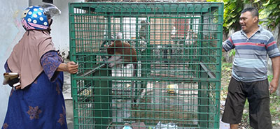 Medan on Saturday (2022/01/22). They came to meet their former pet, a macaque, which was taken by the Wildlife