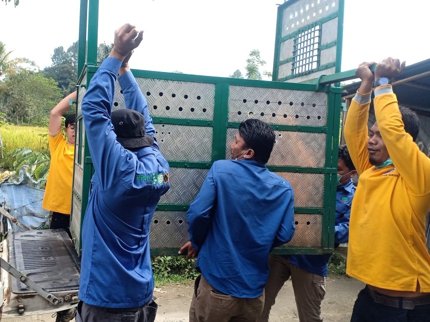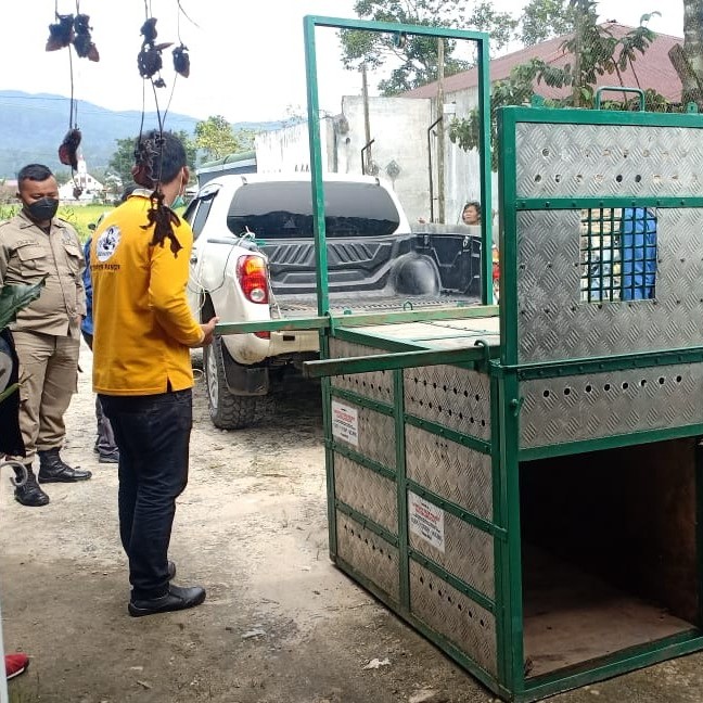 Seekor beruang madu (Helarctor malayunus) berbobot sekitar 60 kilo gram, berhasil di rescue tim gabungan yang terdiri dari Balai Besar Konservasi Sumber Daya Alam (BBKSDA SU SKW IV), SOCP dan SCORPION di Desa Hutauruk. Kecamatan Sipoholon, Tapanuli Utara, Sumatra (21/05/2021). Beruang betina ini telah dipelihara warga selama 12 tahun, namun naluri buas dan liarnya masih terlihat, tim sempat kesulitan untuk memindahkan ke kandang transport sehingga dilakukan pembiusan. Selanjutnya tim telah membawa beruang ke Pusat Penyelamatan Satwa di Sibolangit untuk dilakukan rehabilitasi agar memiliki kesempatan hidup di habitatnya.