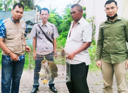 A Long-tailed Macaque escaped from his cage several times in Pulo Brayan village in Medan. When he was out of his cage, he frightened people in the village, therefore, some villagers reported it to the office of BBKSDA-SU.