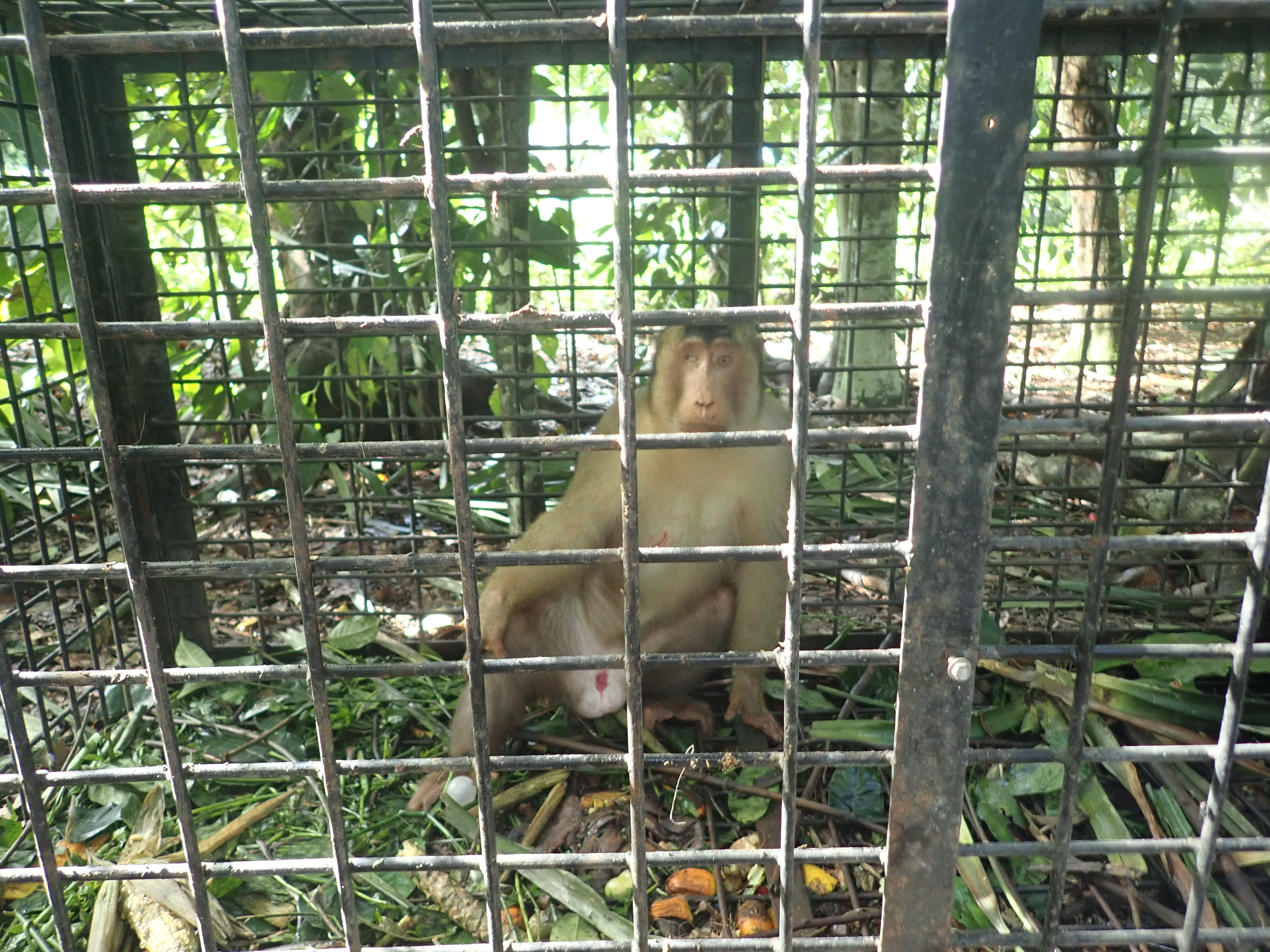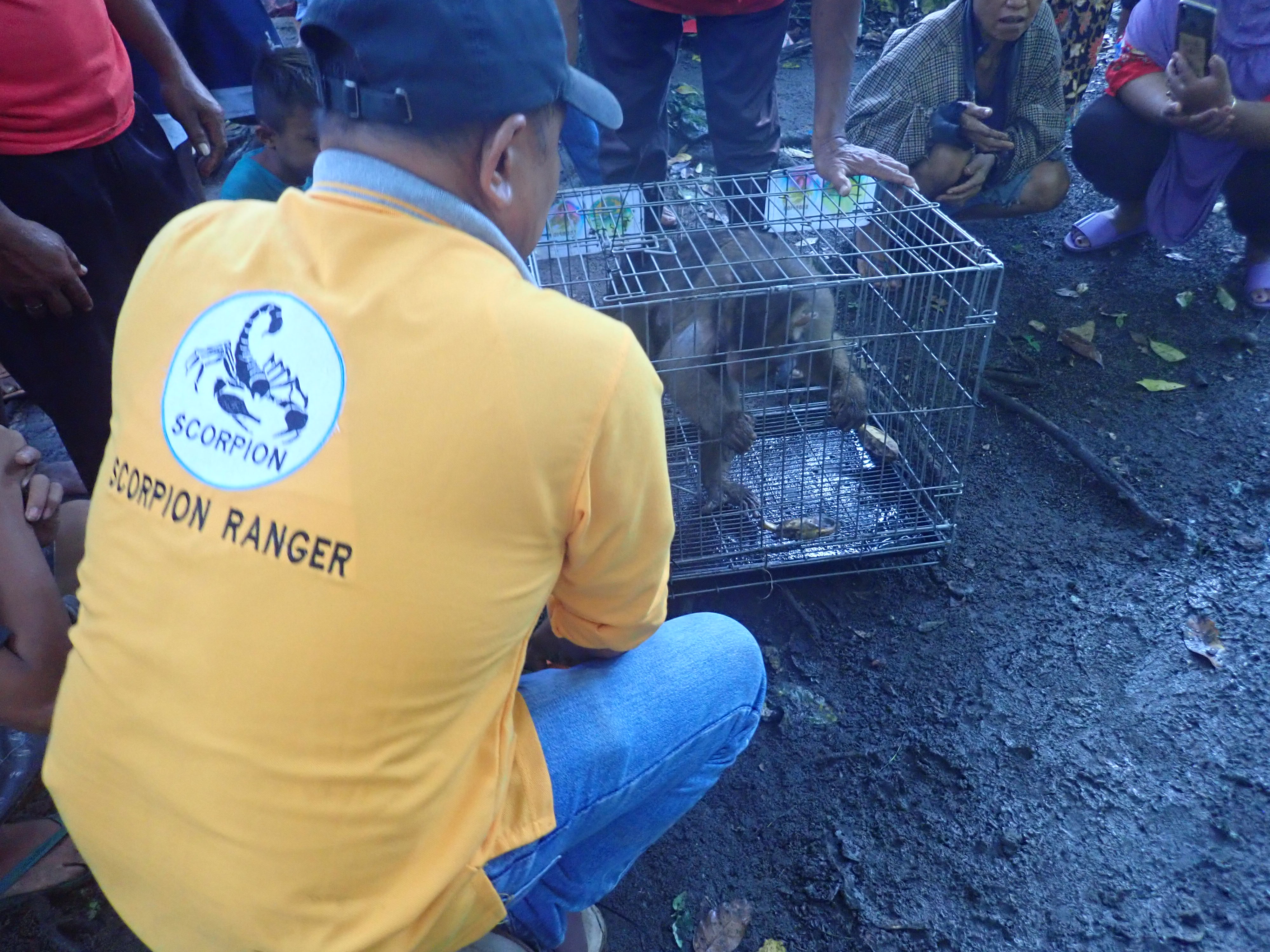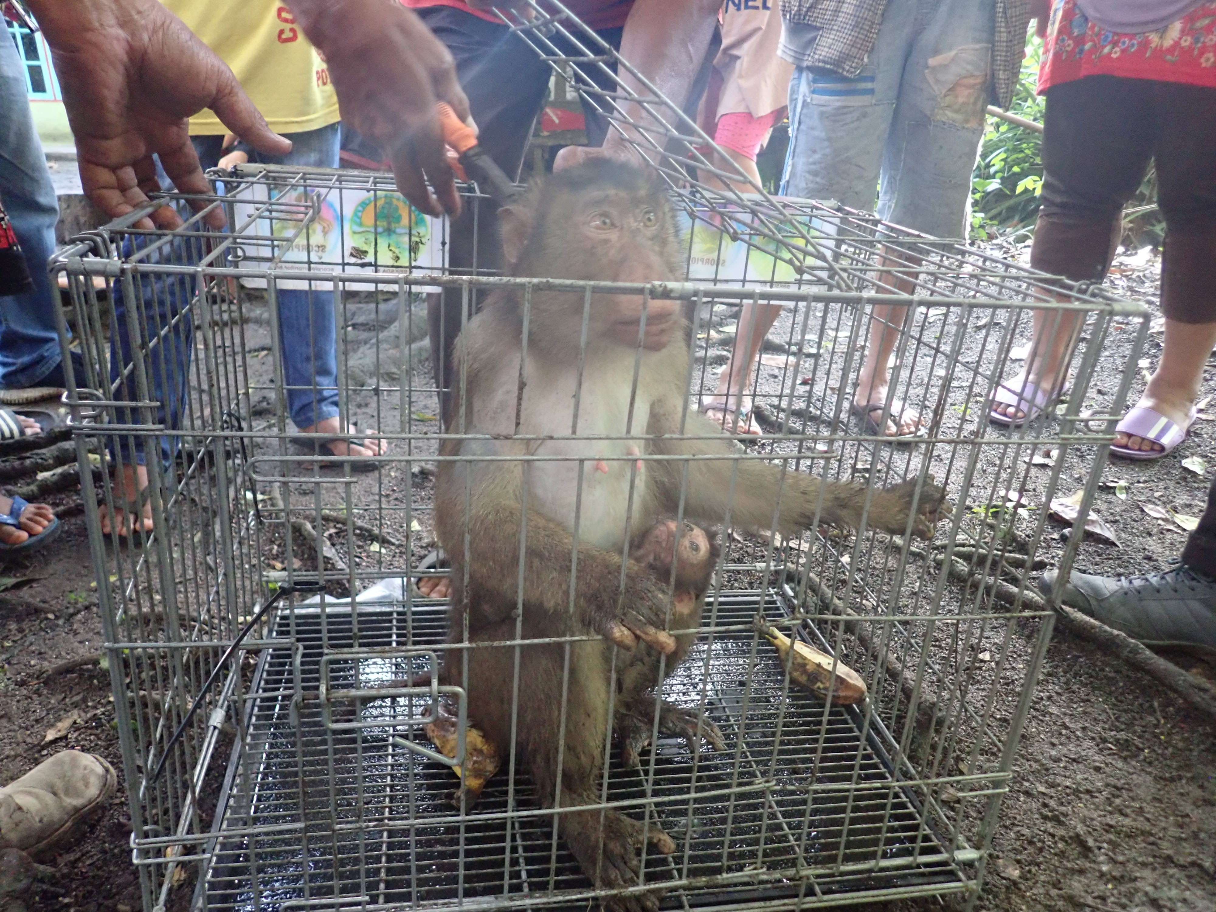 Otoritas satwa liar (BBKSDA SU) bersama staff dari Taman Hewan Pematang Siantar dan Yayasan SCORPION berhasil mengevakuasi 3 ekor monyet (Macaca nemestrina), yang terdiri dari seekor jantan dewasa, betina dewasa dan seekor bayi di desa Kerasaan I, Kecamatan Pematang Bandar, Simalungun, Sumatra (27/04/21).