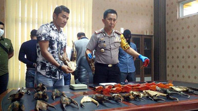 Four traders of wildlife parts with initials A (30 years), B (35 years), MM (40 years), andJ (35 years) were arrested in Southeast Aceh district, Aceh province in Sumatra. Along with the arrest, the police also confiscated from them 16 beaks of rhinoceros hornbills, and 19 horns of deers.
