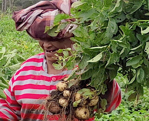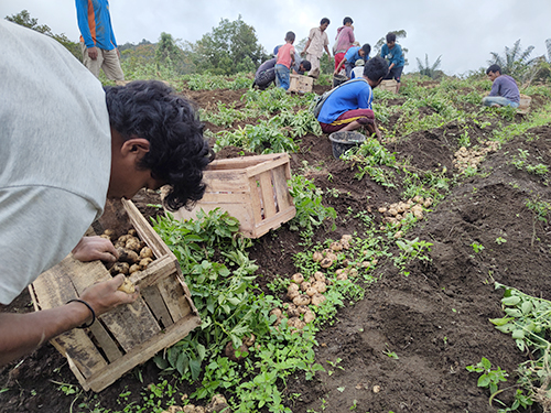 Potato harvesting activities in Ramba Sihasur village.