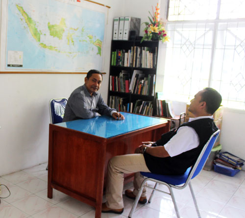 From left: Director of Scorpion, Gunung Gea, and Head of BPPH-LHK Borneo, Subhan in Scorpion office Medan on Wednesday (17 May 2017).