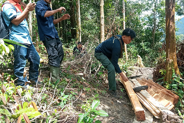Patrol teams suspect 30 trees were illegally felled. The illegal logging wood is believed to be taken from the Dolok Sibualbuali Nature Reserve area. Following up on the findings, the patrol team secured the illegal logging and then destroyed it. Several local people have also been interviewed for the purposes of further investigation. In addition, the nests of animals suspected to be orangutan nests are also found around this area.