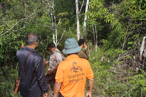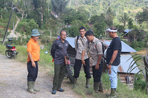 Joint patrol of Scorpion Foundation and the forestry policemen of Ministry of Environment and Forestry in Rimba Sihasur village, Dolok Sipirok Natural Reserve.