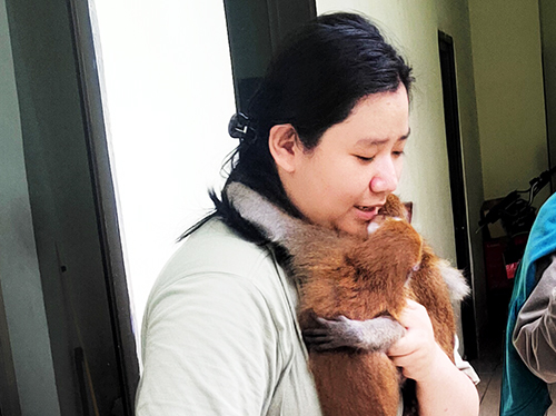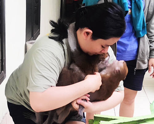 the last hug from owner Meimei just before this animal was taken to the BBKSDA-SU office for medical treatment so that one day it could be released into the wild.