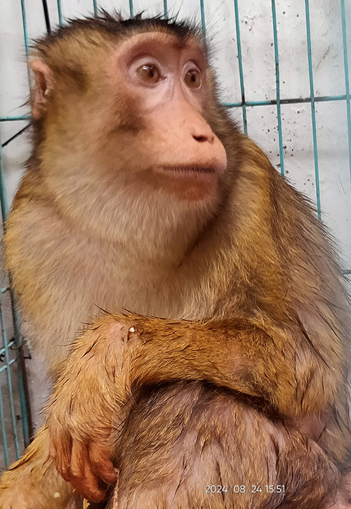 One of the macaques before moving to transport cage.