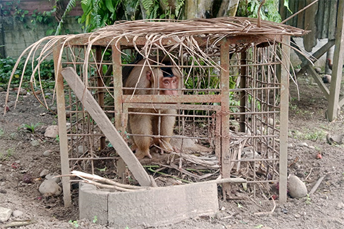 The two macaques were kept by their owner behind his house in East Binjai for some years but later he wanted to hand them over to the BBKSDASU because these animals frequently frightened people who approached them.