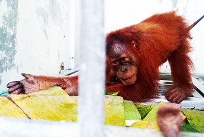 This orangutan is a victim of illegal wildlife trade. (Photo: BBKSDA-SU)