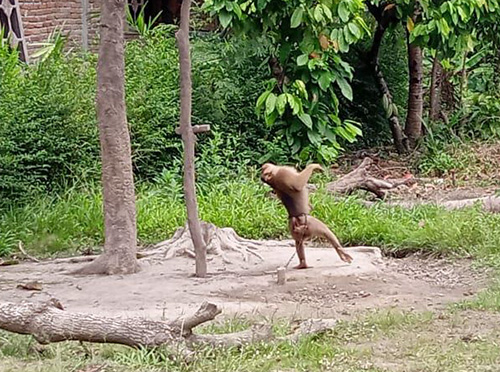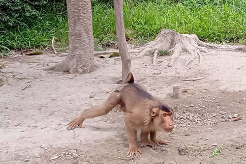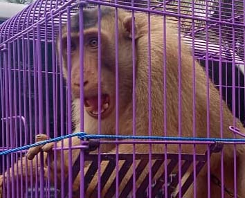 Another picture of the pig tailed macaque in Tandam Hilir II, Hamparan Perak, before the rescue.