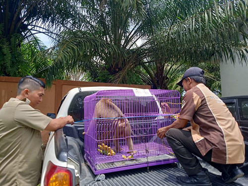 The Wildlife Authority (BBKSDA) in North Sumatra and Scorpion Foundation decided to rescue this animal and put it in a temporary holding cage of the BBKSDA in Stabat for medical check up. When ready and healthy this animal will be returned back in the wild.