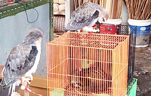 of protected and endangered species openly in Sukahaji wildlife market in