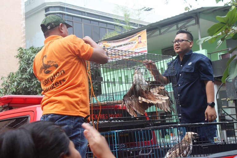The Wildlife Authority (BBKSDA) in North Sumatra and Scorpion Wildlife Trade Monitoring Group rescued four heads of protected wildlife from Griya Hotel in Medan, North Sumatra on Thursday (24th of January 2019). The animals included one crocodile, and three eagles which were kept illegally at the hotel. These animals will follow medical check by veterinarian in Sibolangit Rescue Center (which is managed by the BBKSDA) and will be released back in the wild when ready.