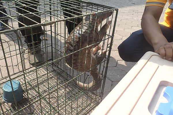 Thursday, March 4, 2021, a male pangolin (Manis javanica) was rescued by the Wildlife Authority (BBKSDA SU SKW II) with the SCORPION team at the River Valley Housing Complex, Blok 2, No. 31 Simalingkar, Medan, Sumatra.