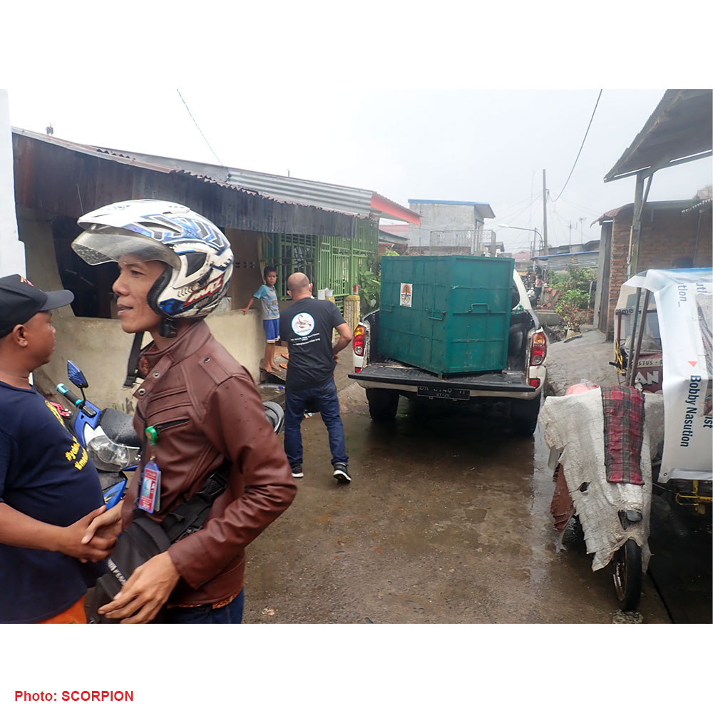 The two monkeys (Macaca nemestrina), named Ferry (male) and Siti (female), have been successfully secured by officers from the Wildlife Authority (BBKSDA SU SKW II) together with field staff from the SCORPION Foundation, in Medan Belawan, North Sumatra. This activity was carried out in response to public complaints. After being examined by a veterinarian, the two monkeys were declared healthy, then released into the Bandar Baru Forest, Sibolangit.