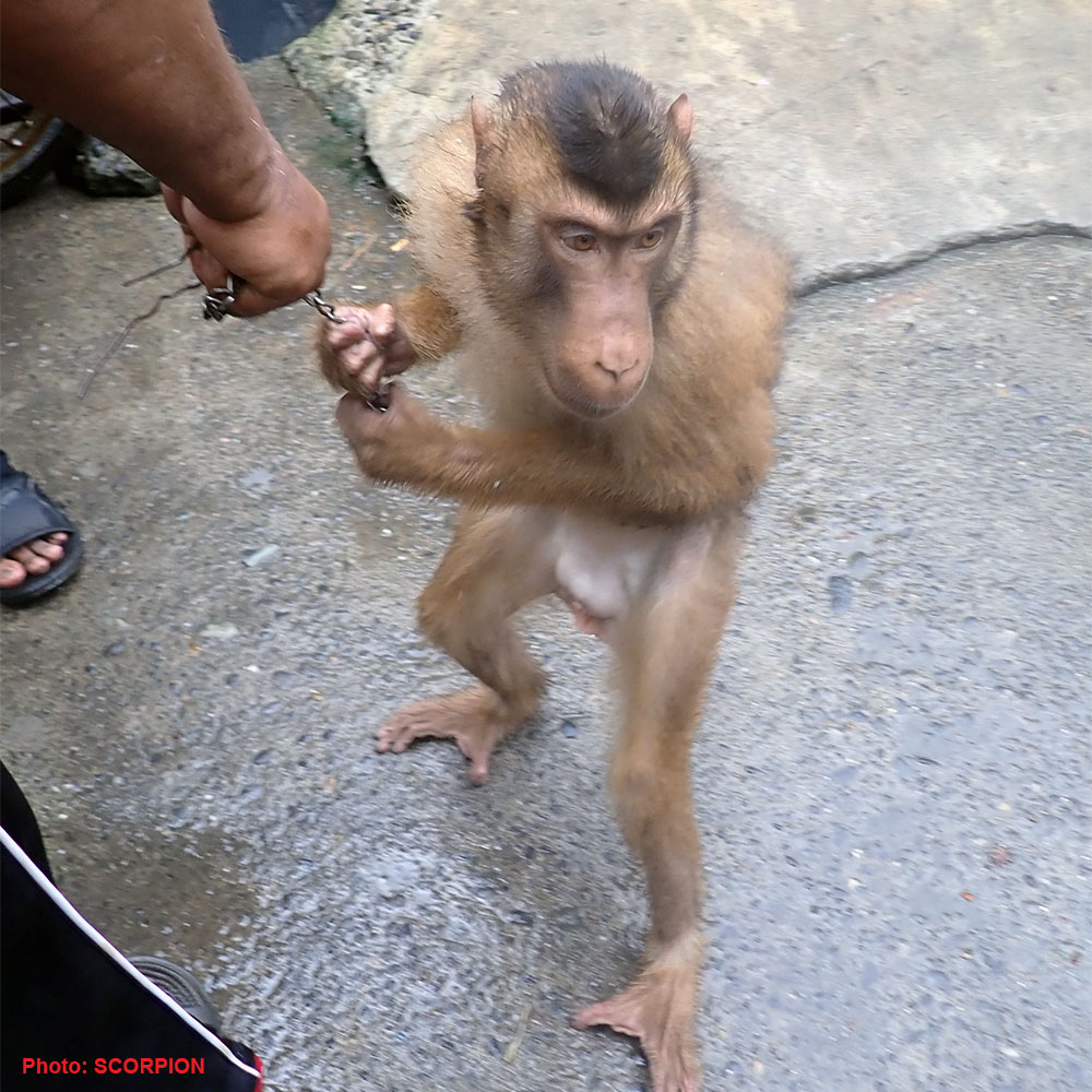 Kedua monyet ini (Macaca nemestrina), diberi nama Ferry (jantan) dan Siti (betina), telah berhasil diamankan oleh petugas dari Otoritas Satwa Liar (BBKSDA SU SKW II) bersama staf lapangan dari Yayasan SCORPION, di Medan Belawan, Sumatera Utara. Kegiatan tersebut dilakukan untuk merespon aduan masyarakat. Setelah dilakukan pemeriksaan oleh dokter hewan, kedua monyet tersebut dinyatakan sehat, kemudian dilepasliarkan di Hutan Bandar Baru, Sibolangit.