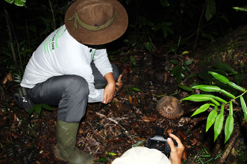 Photographs of the release of pangolin in Sibolangit forest.