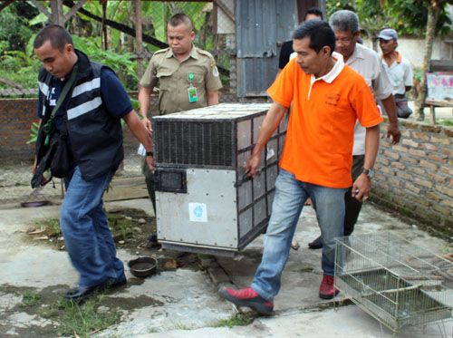 The team from Scorpion Wildlife Trade Monitoring Group and from the Wildlife Authority (BBKSDA) in North Sumatra rescued 2 protected birds from illegal petting in Kacangan Village, Secanggang sub-district of Langkat in North Sumatra province on Tuesday (13th of December 2016). The two birds arrived savely at the BBKSDA office Tuesday night.