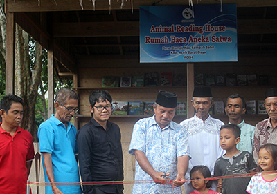 Head of Suka Damai village, Syaripuddin, inaugurated an Animal Reading House in Suka Damai village of Aceh Barat Daya district. Starting from this inauguration day, the Animal Reading House is open for daily for school children, and local community to learn about animals.