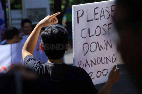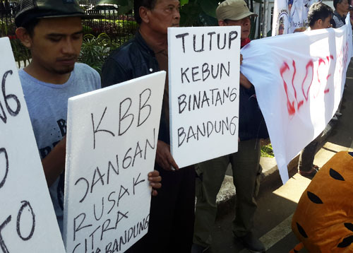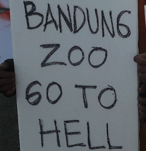A group of animal lovers, together with the Scorpion Wildlife Trade Monitoring Group, today converged on the front of Mayor Office in Bandung, West Java in protest of animal cruelty in Bandung zoo. They brought several banners, among others, asking to close down Bandung Zoo.