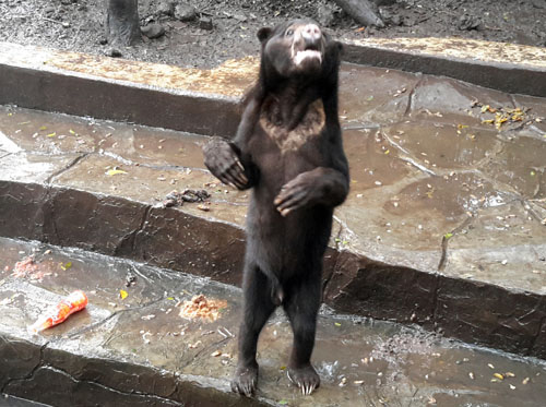 skinny sun bears so hungry one was eating its own dung. Others begged zoo