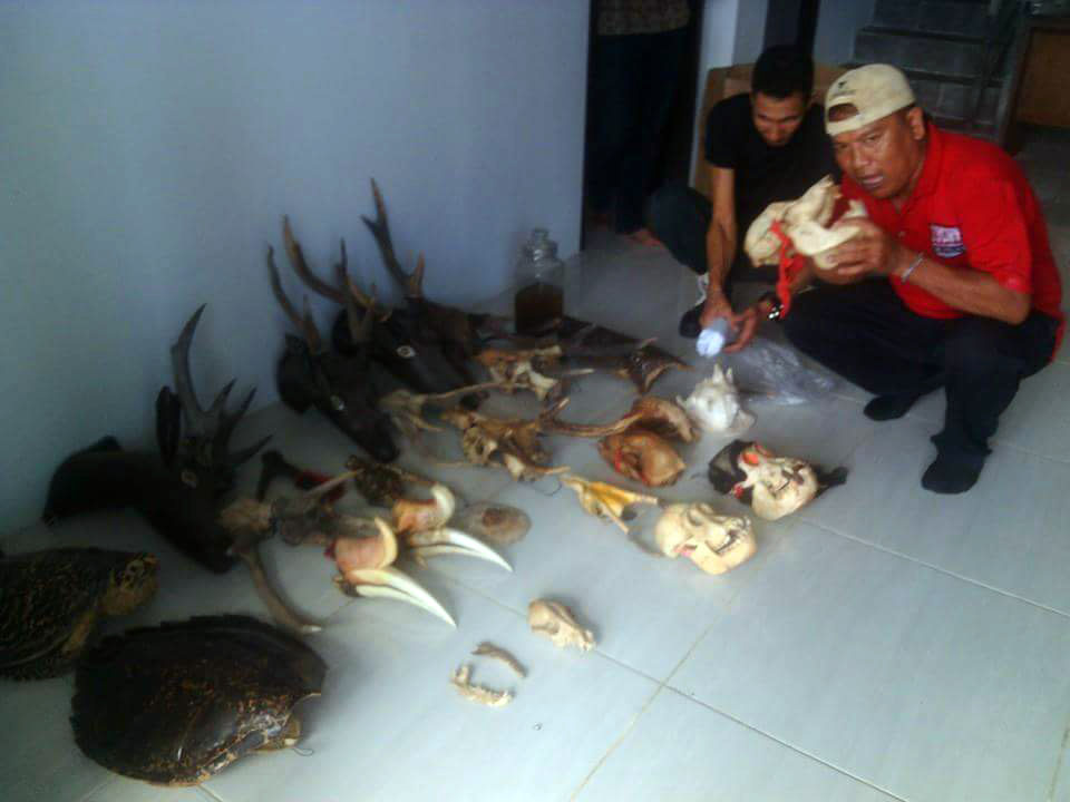 skulls and various accessories made of protected animal parts in Singkawang on