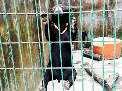 The Scorpion Foundation insists the management of Mata Kucing Recreation Forest in Batam, province of Riau Islands of Indonesia, to improve sun bear enclosure in a mini zoo inside this recreation area .