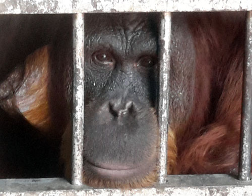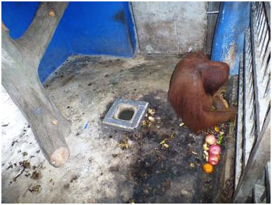 Recently a team of investigators from Scorpion Foundation together with its partner from Friends of the Orangutans (Malaysia) visited Sinka Zoo in Singkawang, West Kalimantan. They watched the two animals that lived with the torment where elephants were chained in both legs and couldn’t move freely. Orangutan was placed in an isolated room with poor condition and dirty.