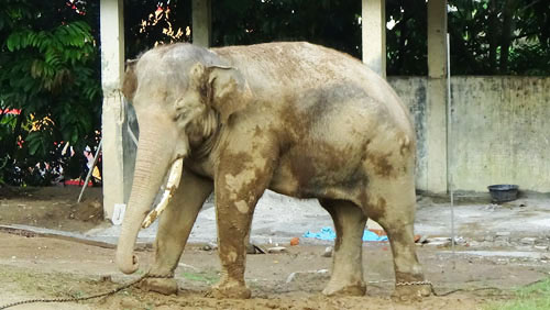 Scorpion investigator said, “Both elephants are chained most of the all day and all of the night. This is very bad and it has caused the elephant to look depressed. To me it looks like the zoo is torturing both elephants, when they should be caring for them. We call on BKSDA to free the elephants from their chains, now.”