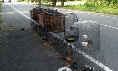 SCORPION investigator in Aceh visited this illegal market on Thursday (25th February 2016) and took photographs of the eagle cub. The investigator also saw songbirds (White-rumped Shama) on sale packed with plastic sack-a very cruel way of displaying the birds.