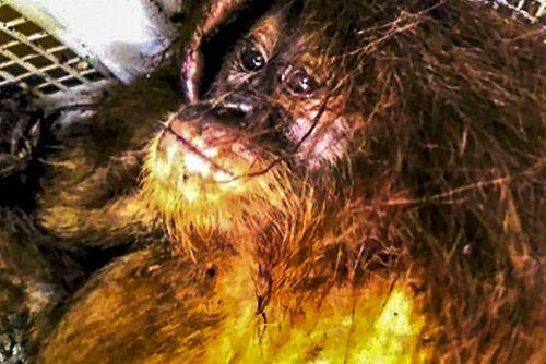 Together with the three orangutans, some other animals were also confiscated including two long-tailed monkeys (macaca fascicularis), one siamang (symphalangus syndactylus) and one binturong (arctictis binturong).